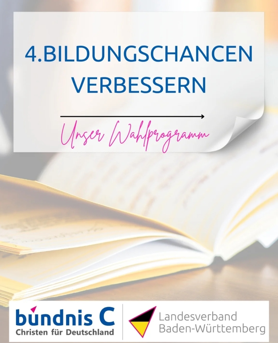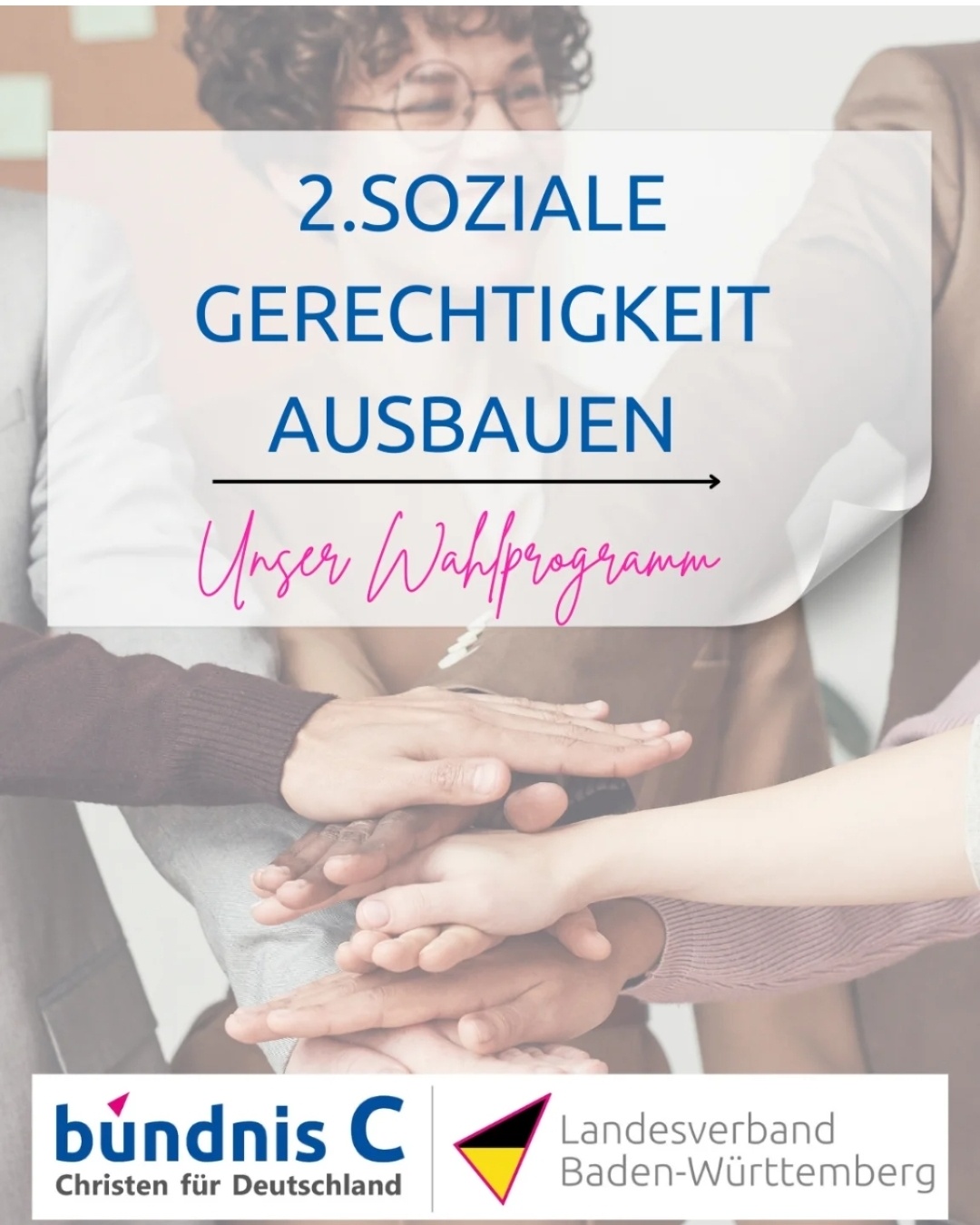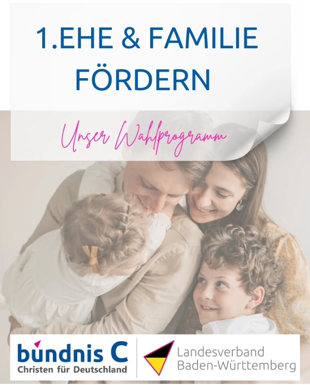 Unser Wahlprogramm auf einen Blick von juergengraalfs | 15. Feb. 2026 | Allgemein Unsere 6 Top-Programmpunkte für Baden-Württemberg image sources Ehe und Familie: Bündnis C02 – Soziale Gerechtigkeit: Bündnis C03 – Gesundheitsversorgung: Bündnis C04 – Bildungschancen: Bündnis C05 – Energie: Bündnis C06 – Mittelstand: Bündnis CTitelbild Flyer: Bündnis C